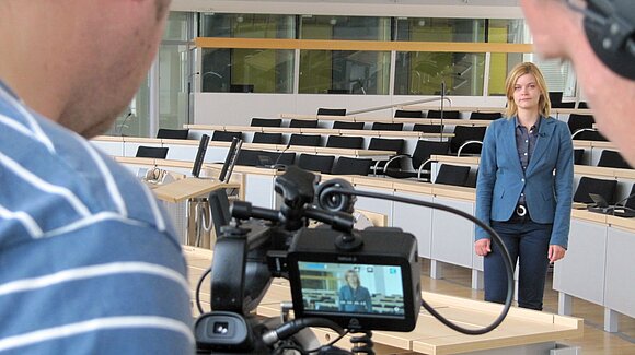 Landtagssitzungen finden nicht hinter verschlossenen Türen statt, sondern sind für interessierte Bürgerinnen und Bürger besuchbar. Das Parlament von Sachsen-Anhalt bemüht sich um eine offensive Öffentlichkeitsarbeit: Dies umfasst auch die Möglichkeit für die unterschiedlichen Medienanstalten (Zeitung, Radio, Fernsehen, Internet), direkt und live aus dem Landtag zu berichten. Am Montag, 1. September, stattete ein MDR-Drehteam dem Landtag einen Besuch ab. Hintergrund: Für den Parlamentarischen Abend, der am 17. September im Landesfunkhaus in Magdeburg stattfindet, werden mehrere kleine Filme gedreht. Darin werden die Moderatoren und deren Sendungen aus dem MDR-Landesfunkhaus vorgestellt. Unter anderem wird darin auch MDR-Info-Landeskorrespondentin Vera Wolfskämpf zu sehen sein.