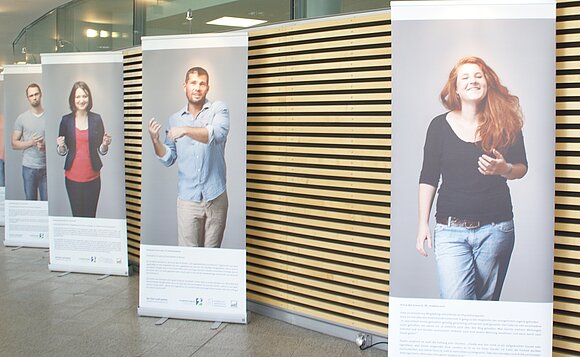Anmerkung:In der Ausstellung treffen die Besucher auf Fotos von neun jungen Erwachsenen, die über ihre Erfahrungen in der evangelischen Kinder- und Jugendarbeit in Magdeburg-Ottersleben sprechen. Foto: Stefanie Böhme