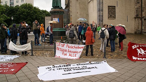 Demonstranten vor der Johanniskirche. Foto: Ulrich Grimm