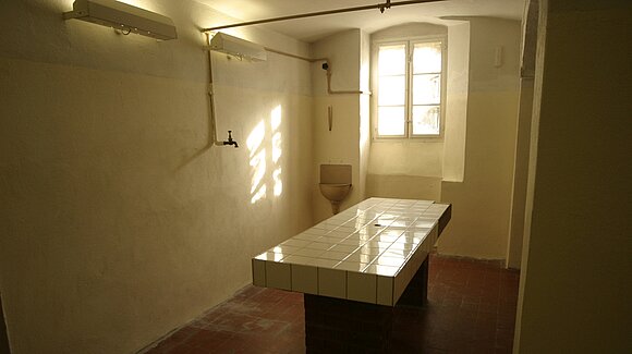 Sektionsraum in der ehemaligen NS-„Euthanasie“-Anstalt in Bernburg. Über 8000 Menschen wurden in der Einrichtung systematisch getötet. Foto: Gedenkstätte Bernburg