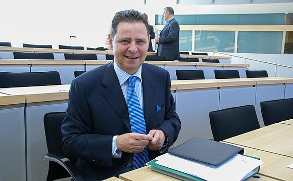 Bernd Heynemann (CDU) an seinem neuen Arbeitsplatz im Landtag von Sachsen-Anhalt. Foto: Stefanie Böhme