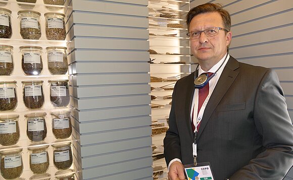 Anmerkung:Landtagspräsident Detlef Gürth in der Ausstellungsfläche des IPK Gattersleben im Deutschen Pavillon. Foto: Birgit Handke/IMG