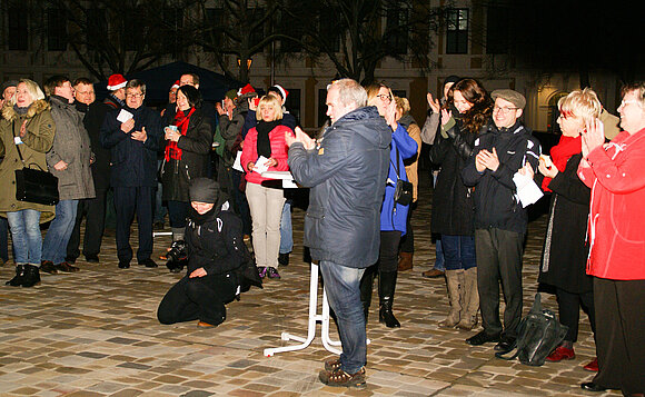 Landesjugendpfarrer Peter Herrfurth und die Evangelische Jugend des Landes Sachsen-Anhalt kamen mit Politiker/innen und Jugendlichen, Jugendverbänden und Mitarbeiter/innen der evangelischen Jugend sowie interessierten Gäste auf dem Magdeburger Domplatz unter dem Motto „Wer kommt zur Krippe?“ am Mittwoch, 9. Dezember, zu einem Begegnungsabend zusamm