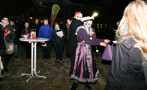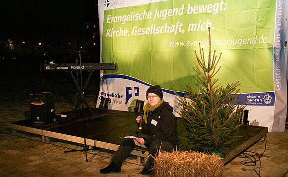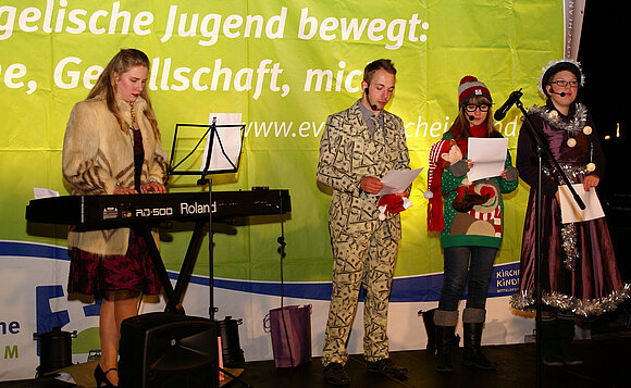 Eine Gruppe von Jugendlichen aus der evangelischen Jugendverbandsarbeit hatte zusammen mit der Theaterpädagogin Kerstin Reichelt eine Art Vorweihnachts-Krippenspiel entwickelt und führte dieses am Begegnungsabend auf. Bei Punsch und Grillwurst über Gott und die Welt wurde dann zum Gespräch eingeladen. Die Veranstaltung entstand als gemeinsames Projekt der Jugendbildungsreferenten, die im Evangelischen Kinder- und Jugendbildungswerk e.V. vernetzt sind und vom Land Sachsen-Anhalt gefördert werden.