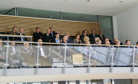 Prof. Dr. Suzanne S. Schüttemeyer eröffnete ihre Festrede mit einem Dank an die Abgeordneten der ersten Wahlperiode. Mit Bewunderung und Respekt habe sie die Entwicklung seinerzeit mitverfolgt. Die Abgeordneten hätten viel Verantwortung übernommen und Leistungen vollbracht, die nicht vergessen werden dürften und die Ansporn für alle künftigen Generationen sein sollten.