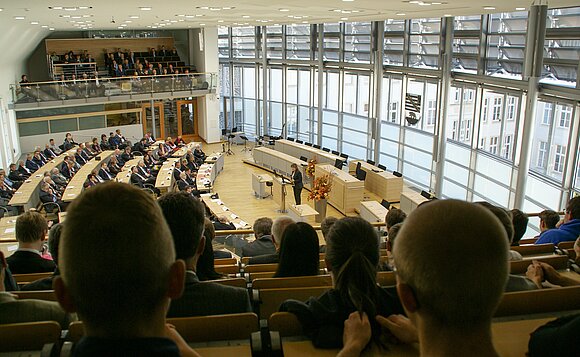 Das Land habe eigene Wege beschritten und seinen Platz im föderalen System der Bundesrepublik eingenommen. „Erst das Parlament, dann die Regierung, heißt es“, so Schröder, denn hier fielen die Entscheidungen: die Wahl des Regierungschefs, die Gestaltung des Haushalts und vieles mehr. Handlungsfähiges Regieren sei ohne Parlament nicht möglich, so der CDU-Politiker.