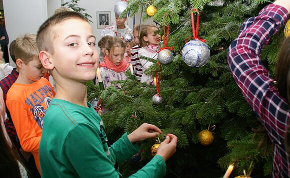 Anmerkung:Impressionen vom traditionellen Weihnachtsbaumschmücken im Landtag. In diesem Jahr mit Kindern aus der Grundschule Burgstall. Foto: Stefanie Böhme