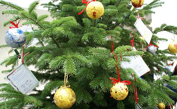 Anmerkung:Impressionen vom traditionellen Weihnachtsbaumschmücken im Landtag. Am Ende war der Baum mit wunderschönem selbst gebastelten Kugeln und den Weihnachtswünschen der Kinder behangen. Foto: Stefanie Böhme
