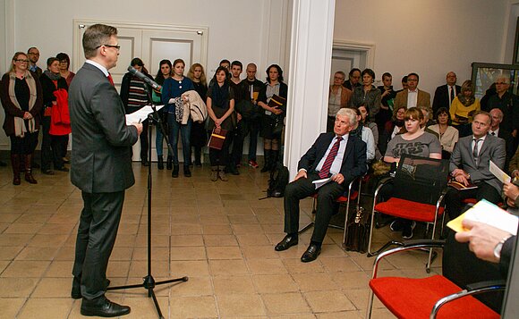 Anmerkung:Impressionen zur Ausstellungseröffnung „Hammer. Zirkel. Stacheldraht. – Zwangsarbeit politischer Häftlinge in der DDR“ im Landtag von Sachsen-Anhalt. Foto: Stefanie Böhme