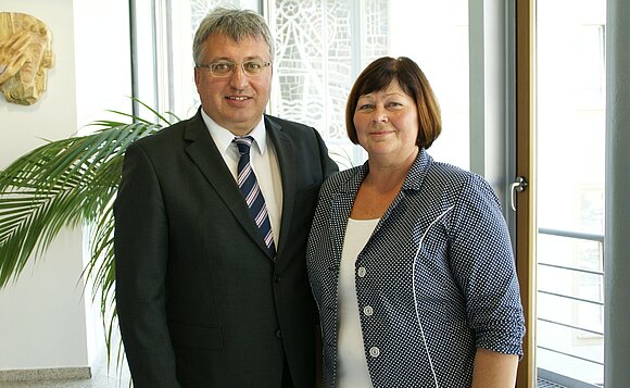 Anmerkung:Gabriele Brakebusch (CDU) hat den Vorsitz im Ausschuss für Ernährung, Landwirtschaft und Forsten übernommen. Hier zu sehen, kurz vor der Konstituierung, mit Landtagspräsident Hardy Peter Güssau. Foto: Stefan Müller