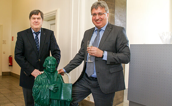 Als Abschiedsgeschenk bekam Steinecke ein ein Meter hohes Standbild von Martin Luther, einem berühmten Kirchenmann aus dem 16. Jahrhundert.