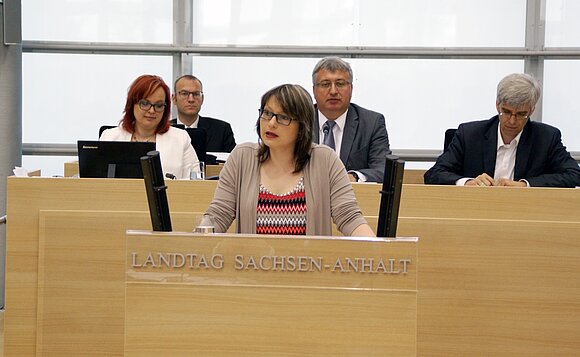 Anmerkung:Die SPD-Fraktionsvorsitzende Dr. Katja Pähle während ihres Redebeitrags. Foto: Stefanie Böhme