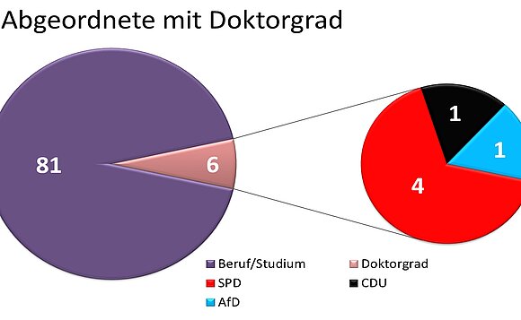 Anmerkung:Bei sechs Abgeordneten ist der höchste Bildungsabschluss der Doktorgrad. Grafik: Landtag
