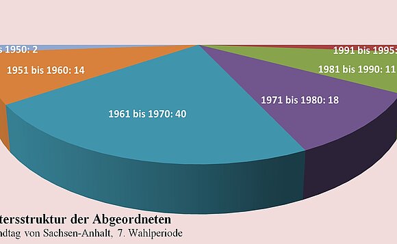 Anmerkung:Fünf Jahrzehnte umfassen die Geburtstage der aktuellen Landtagsabgeordneten. Grafik: Landtag