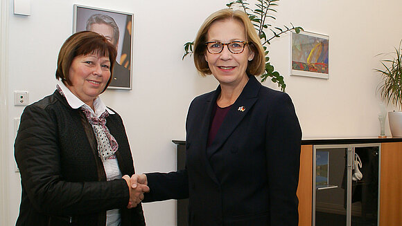 Landtagspräsidentin Gabriele Brakebusch (l.) empfing die Botschafterin Finnlands, Ritva Koukku-Ronde, zum Antrittsbesuch im Landtag von Sachsen-Anhalt. Foto: Stefanie Böhme