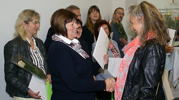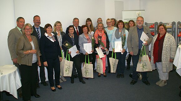 Übergabe der Urkunden durch Landtagspräsidentin Gebriele Brakebusch an die Demokratieberaterinnen und -berater. Foto: Stefan Müller