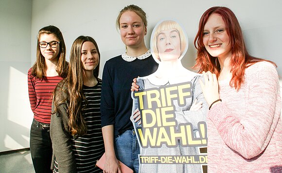 Anmerkung:Glückliche Erstwählerinnen bei der Juniorwahl 2016 in der IGS Regine Hildebrandt in Magdeburg, v.l.n.r: Alissa, Vada, Francine und Gina (alle 16 Jahre). Foto: Stefanie Böhme