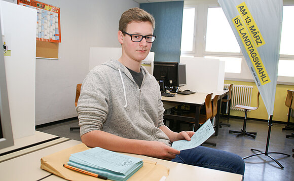 Auch die Wahlhelfer waren an der IGS leicht zu finden, so Hartmann weiter. Denn schließlich wird bei der Juniorwahl die Landtagswahl eins zu eins simuliert. Die Schülerinnen und Schüler müssen ihren Namen nennen, dann bekommen sie ihren Wahlzettel und machen in der Wahlkabine ihre Kreuze. Einer der Wahlhelfer an der IGS war Hiwa Badal Kheder. Der 18-jährige war für die „Überprüfung der Personalien“ zuständig und findet das Projekt super. Bei der Landtagswahl selbst kann der gebürtige Iraker nicht wählen, weil er keine deutsche Staatsbürgerschaft besitzt. Für Menschen, die wählen könnten, es aber nicht machen, hat er wenig Verständnis: „Sie vergeben ihre Stimme und nützen damit nur den anderen Parteien.“