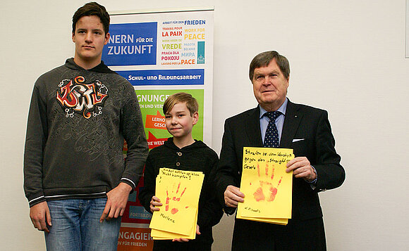 Landtagspräsident Dieter Steinecke verwies darauf, dass die „Aktion Rote Hand“ seit mehr als zehn Jahren ein wichtiger Bestandteil im Engagement junger Menschen gegen diese schreienden Menschenrechtsverstöße sei. Er sagte: „Was es für ein Kind oder einen Jugendlichen heißt, zum Töten gezwungen zu werden und welche traumatischen Folgen dies hat, übersteigt unser aller Vorstellungsvermögen.“ Er appellierte an die Politiker in allen Staaten, dieses erste Kriegsverbrechen, Kinder als Söldner zu engagieren, nicht bloß zu ächten, sondern aktiv zu bekämpfen und die Schuldigen zu verurteilen. Dabei erinnerte er an ein afrikanisches Sprichwort: „Jedes Kind ist ein Zeichen der Hoffnung für diese Welt.“