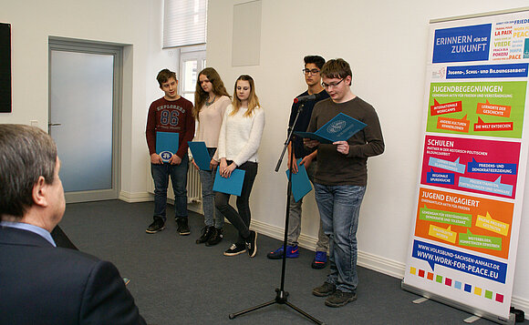 Rund 30 Schülerinnen und Schüler aus Magdeburg haben Landtagspräsident Dieter Steinecke am Freitag, 12. Februar, mehrere Hundert rote Handabdrücke übergeben. Damit beteiligen sich die Jugendlichen am weltweiten Aktionstag gegen den Einsatz von Kindersoldaten. Mit der „Aktion Rote Hand“ des Volksbundes Deutsche Kriegsgräberfürsorge e. V. soll ein Zeichen des Engagements zum Schutz von Kindern und gegen ihren Einsatz als Kindersoldaten gesetzt werden. Die roten Hände wurden im Laufe des vergangenen Jahres an Projekttagen des Volksbundes in verschiedenen Schulen in Sachsen-Anhalt gesammelt.