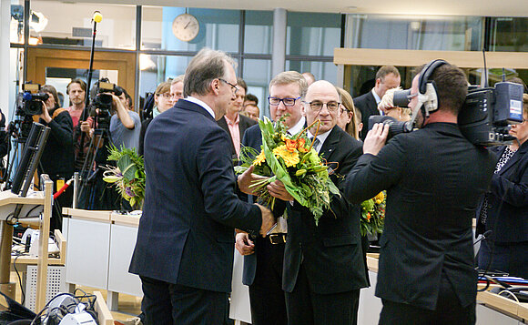 Anmerkung:Auch Oppositionsführer André Poggenburg (AfD) überbrachte Ministerpräsident Dr. Reiner Haseloff die Glückwünsche seiner Fraktion. Foto: Stefanie Böhme