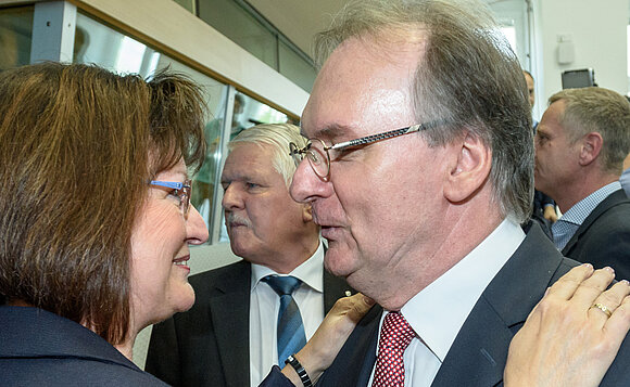 Anmerkung:Freude und Stolz natürlich auch bei Ehefrau Gabriele Haseloff, die nun fünf weitere Jahre die First Lady des Landes sein wird. Foto: Jens Schlüter/Landtag von Sachsen-Anhalt.
