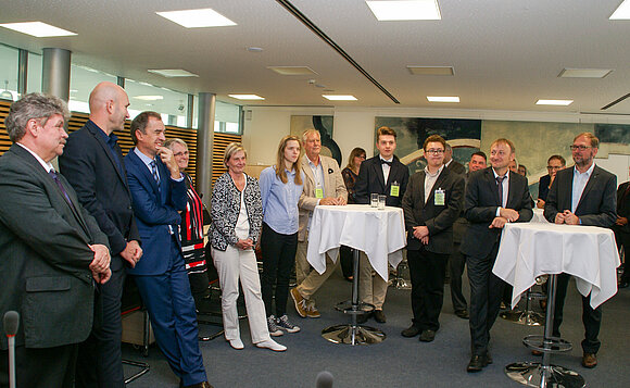 Anmerkung:Zu dem kleinen Empfang zu Ehren der Landessieger beim Wettbewerb „Jugend forscht“ waren auch einige Landtagsabgeordnete gekommen. Foto: Stefanie Böhme