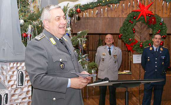 Anmerkung:Der Chef des Landeskommandos Sachsen-Anhalt, Oberst Halvor Adrian, bedankte sich im Namen aller Soldatinnnen und Soldaten für die Anerkennung. Sie komme sowohl bei den Soldaten als auch ihren Angehörigen jedes Jahr sehr gut an. Foto: Stefanie Böhme