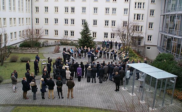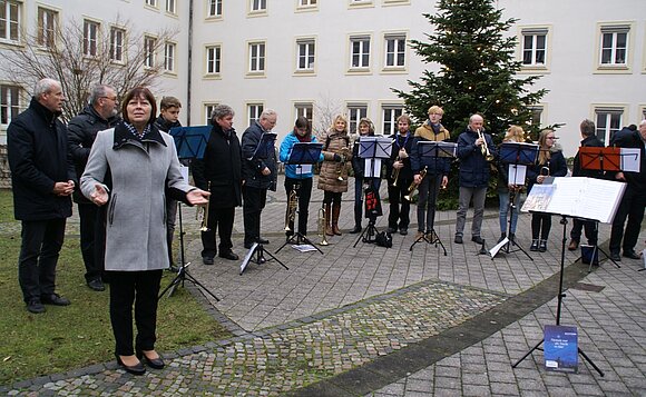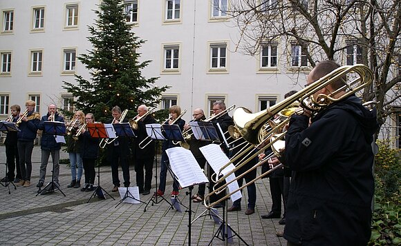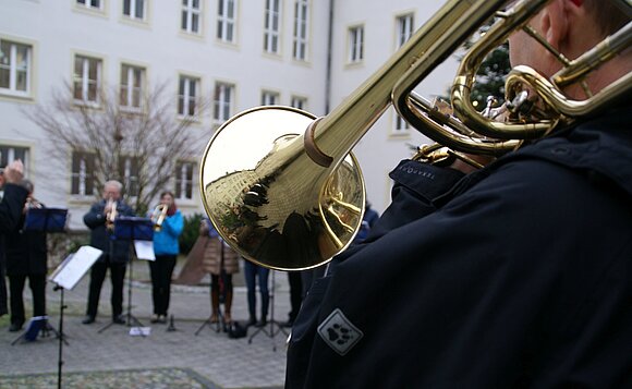 Der Posaunenchor Köthener Blech und das Dombläserensemble Magdeburg gaben am Donnerstag, 15. Dezember 2016, ein kleines Weihnachtskonzert im Innenhof des Landtags. Mit den schönsten Weihnachts- und Adventsliedern nahmen die Musikerinnen und Musiker die letzte Sitzungsperiode in diesem Jahr zum Anlass, auch den Landtag auf die Weihnachtszeit einzustimmen.