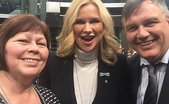Anmerkung:Auch Landtagspräsidentinnen machen manchmal ein Selfie: Gabriele Brakebusch (links) mit Schauspielerin Veronika Ferres und Comedian Hape Kerkeling. Foto: Gabriele Brakebusch