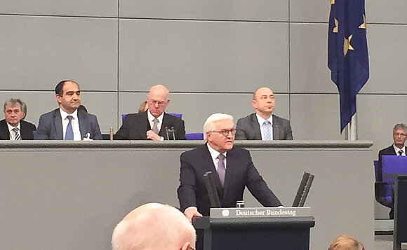 Anmerkung:Der SPD-Politiker Dr. Frank-Walter Steinmeier wurde mit einer großen Mehrheit im Plenarsaal des Berliner Reichstags zum neuen Bundespräsidenten gewählt. 931 Stimmen konnte Steinmeier bereits im ersten Wahlgang auf sich vereinen, 300 mehr als nötig. Foto: Gabriele Brakebusch