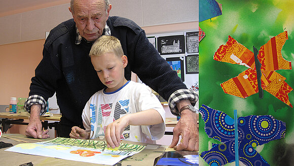 Kunstunterricht mit einem echten Kunst-Professor? An der Marianne-Buggenhagen-Schule in Darlingerode im Harz ist das seit über fünf Jahren Realität. Im Rahmen von projektorientiertem Kunsterziehungsunterricht gibt der emeritierte Prof. Karl Oppermann sein Wissen an interessierte Kinder weiter. Unter seiner Anleitung gestalten die Acht- bis Fünfzehnjährigen kindgemäße Kunst. Dabei wenden sie verschiedene Mal- und Gestaltungstechniken an. Besonders schöne Kunstwerke entstanden zum Thema „Schmetterlinge" und „Was krabbelt denn da".