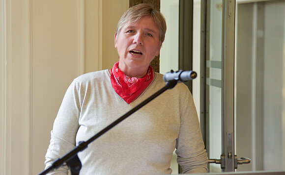 Anmerkung:Silvia Rentzsch vom Trans-Inter-Aktiv Mitteldeutschland e. V. während ihres Redebeitrags zur Ausstellungseröffnung. Foto: Stefan Müller
