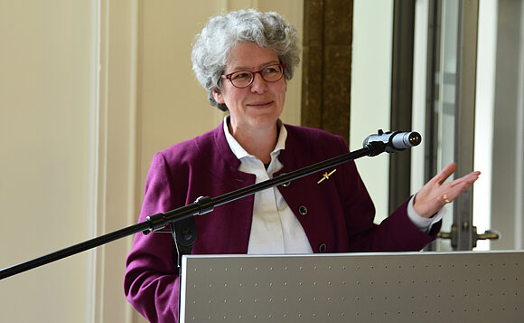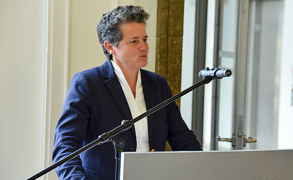 Anmerkung:Gleichstellungsministerin Anne-Marie Keding während ihres Redebeitrags zur Ausstellungseröffnung. Foto: Stefan Müller