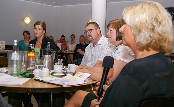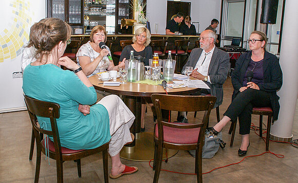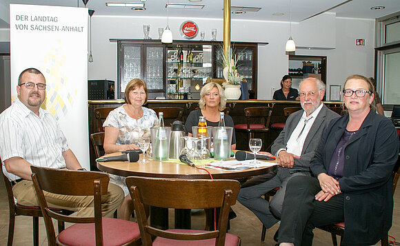 Anmerkung:Impressionen vom siebenten Bürgerdialog des Landtags „Sind wir in guter Verfassung?“ in Osterburg. Das Podium (v.l.): Andreas Höppner (DIE LINKE), Landtagspräsidentin Gabriele Brakebusch, Moderatorin Ulrike Meineke, Pfarrer Norbert Lazay, Katrin Budde (SPD). Foto: Stefanie Böhme