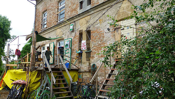 Seit der Besetzung im Januar 2016 wurde das unbewohnte ehemalige Gaswerk in Halle von Aktivisten in ein sozio-kulturelles Zentrum namens „Hasi“verwandelt. Foto: Kreutzfeldt/HalleSpektrum.de