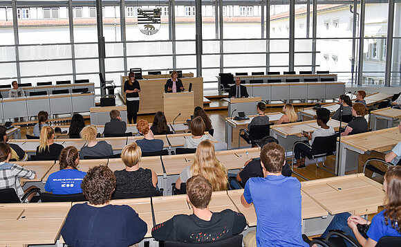 Landtagspräsidentin Gabriele Brakebusch zeigte sich erfreut über den neuerlichen Besuch ausländischer Jugendlicher. Sie selbst konnte schon einige Erfahrungen bei der Aufnahme von Jugendlichen des „Blue Lake“-Programms sammeln. Für sie selbst etwas ungewöhnlich dürfte ihr Empfang im Plenarsaal ausgefallen sein: Die Jugendlichen begrüßten sie fröhlich mit Applaus. „Es ist toll, dass Sie die Chance nutzen, die Welt kennenzulernen und zu schauen, wie und wo Sie sich selbst verwirklichen wollen“, betonte sie.
