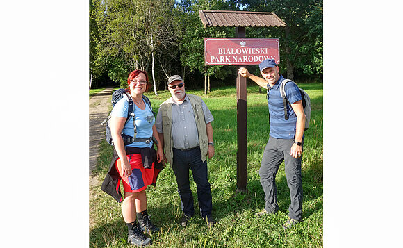 Anmerkung:Auf Wolfsexpedition im Białowieża-Nationalpark östlich von Warschau: Die Landtagsabgeordneten (v.l.) Lydia Funke (AfD), Jürgen Barth (SPD) und Wolfgang Aldag (Grüne). Foto: Ulrike Brandt/Landtag.