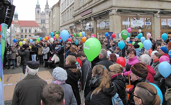 Anmerkung:Luftballonaktion auf der Meile der Demokratie. Foto: Stefan Müller