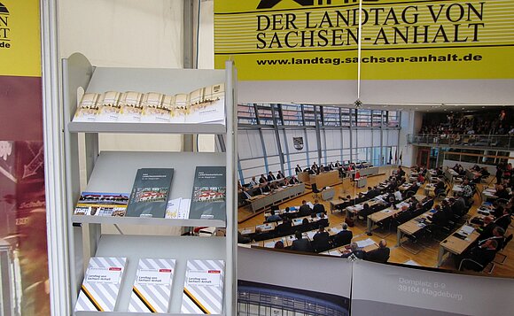 Anmerkung:Der Landtag beteiligte sich auch in diesem Jahr mit einem eigenen Stand. Dort konnten sich die Besucher unter anderem die Landesverfassung, eine Informationsbroschüre über den Landtag und hübsche Landtagspostkarten mitnehmen. Foto: Stefan Müller
