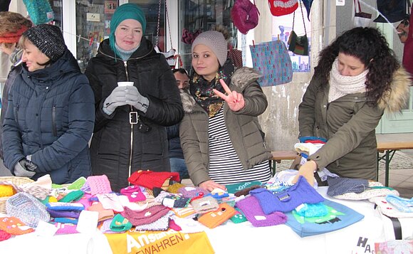 Anmerkung:Am Stand des Nähprojekts der Hoffnungsgemeinde. Foto: Stefan Müller