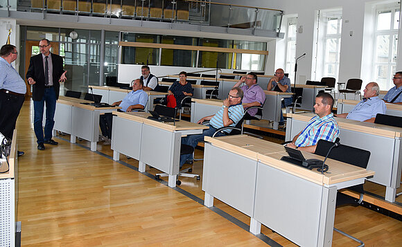 Anmerkung:Auf einem Rundgang durch den Landtag erhielten die polnischen Gäste einen Einblick in die Geschichte des Hauses und die Arbeit der Abgeordneten. Besonders eindrücklich war der Besuch des Plenarsaals. Foto: Stefanie Böhme