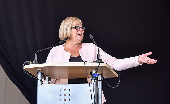 Anmerkung:Landtagspräsidentin Gabriele Brakebusch warb in ihrem Grußwort unter anderem für mehr Schulgärten im Land. Foto: Stefanie Böhme