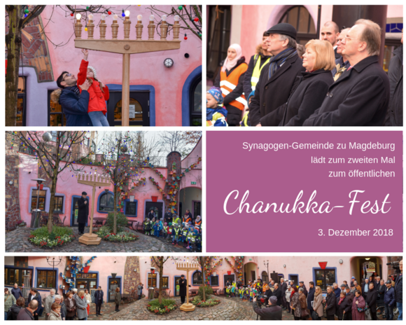 Auf Einladung der Synagogen-Gemeinde zu Magdeburg nahm Landtagspräsidentin Gabriele Brakebusch am Montag, 3. Dezember 2018, im kleinen Innenhof des Hundertwasserhauses Magdeburg zum zweiten Mal am öffentlichen Entzünden des Chanukka-Lichts in der Landeshauptstadt teil.