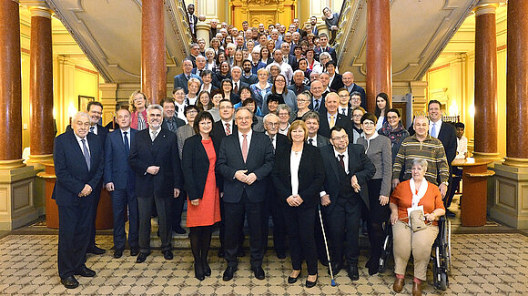 Landtagspräsidentin Gabriele Brakebusch und Ministerpräsident Dr. Reiner Haseloff begrüßten etwa 100 ehrenamtlich Tätige bei einem Empfang in der Magdeburger Staatskanzlei. Foto: Claus-Peter Fuchs