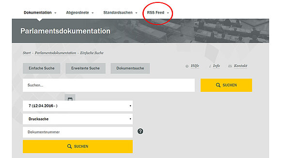 Die Suche nach Dokumenten auf der Internetseite des Landtags wird dank RSS-Feeds jetzt noch einfacher und effektiver. Foto: Screenshot