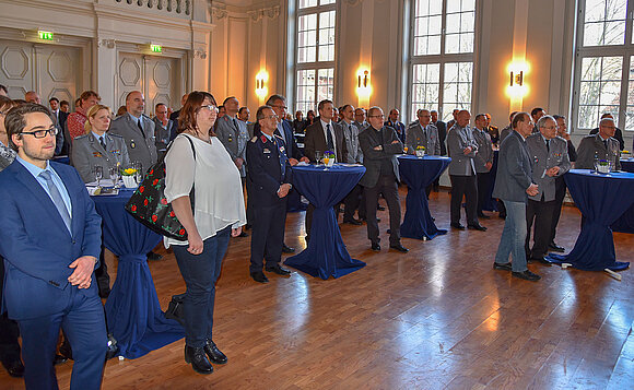 Anmerkung:Landtagspräsidentin Gabriele Brakebusch (1. Reihe links) beim Jahresempfang des Kommando Sanitätsdienstliche Einsatzunterstützung Weißenfels. Foto: Stefanie Böhme