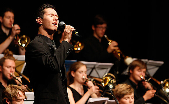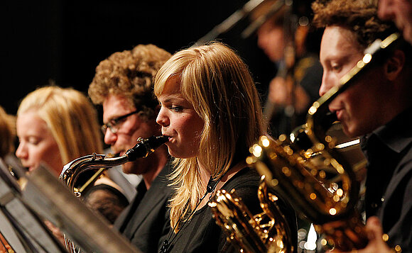 Anmerkung:Das Jugendjazzorchester Sachsen-Anhalt im Konzert. Foto: Steffen Schellhorn