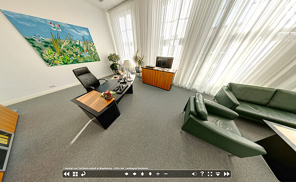 Der Landtag von Sachsen-Anhalt bietet einen virtuellen Rundgang durch das Parlamentsgebäude an. Frischproduzierte 360-Grad-Panoramafotografien mit integrierten, einzeln anzusteuernden Hinweistexten und Detailfotos ermöglichen einen Einblick in den Gebäudekomplex am Magdeburger Domplatz, als wäre man live vor Ort und würde sich umschauen. Die Panoramen ermöglichen dem Betrachter, sich interaktiv durch das Gebäude zu bewegen und individuell umzusehen.