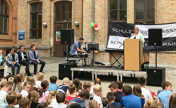 Landtagspräsidentin Gabriele Brakebusch hat am Freitag, 24. August 2018, erstmals eine Schulpatenschaft übernommen. Das Neue Städtische Gymnasium (NSG) in Halle (Saale) bekam offiziell den Titel „Schule ohne Rassismus – Schule mit Courage" verliehen und die Landtagspräsidentin unterstützt das Projekt mit ihrer Patenschaft.